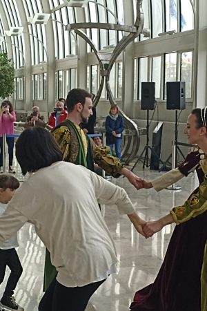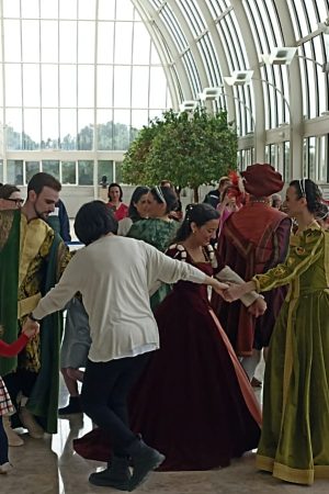 El sábado comenzó con una actuación de danza histórica a cargo de Armonía Danza “Leonora” en el Hall de los Naranjos, que recreó las coreografías de los primeros manuales de danza de la corte de Leonor de Toledo, mecenas de muchas artistas femeninas en la Florencia del Renacimiento. Esta actuación sirvió como introducción a la jornada, que continuó con una serie de actividades pensadas para distintos públicos.