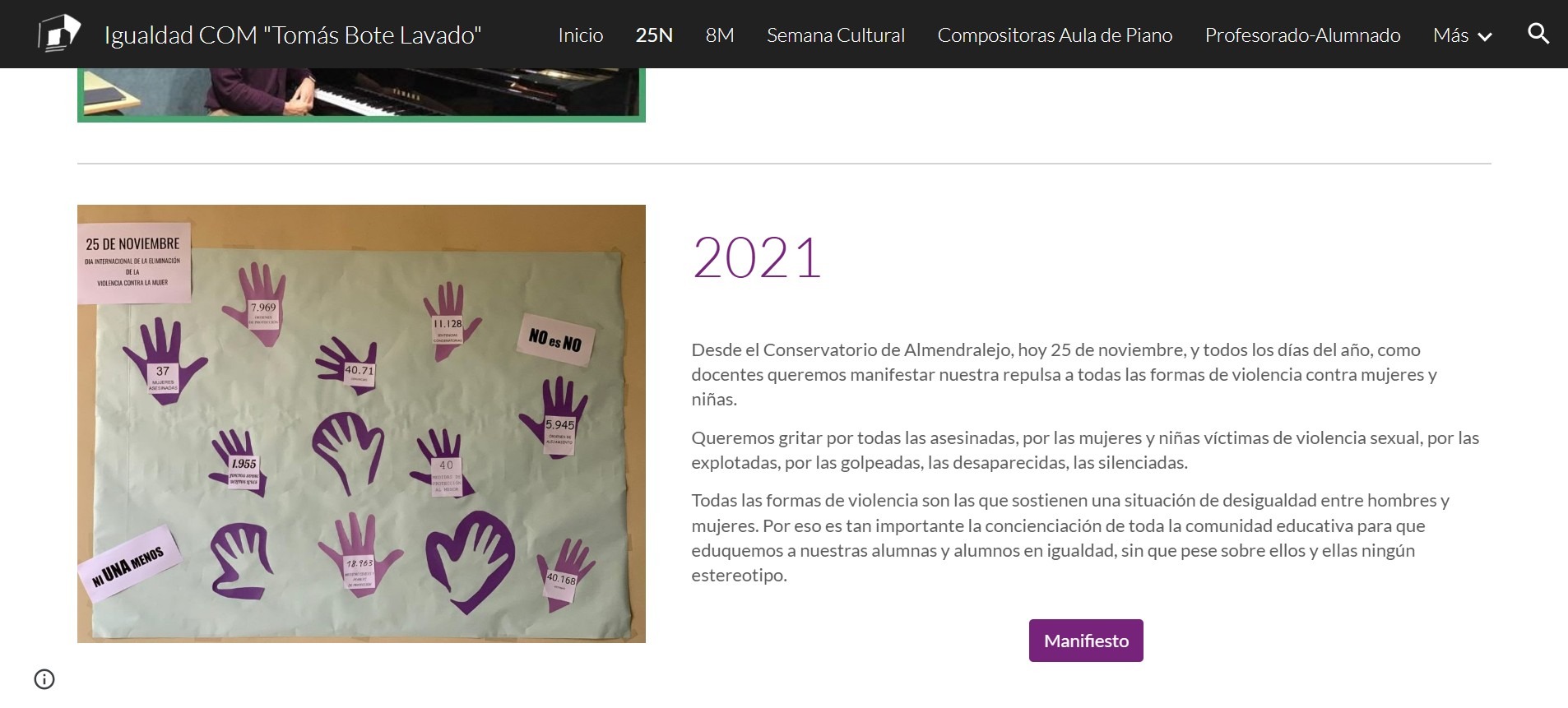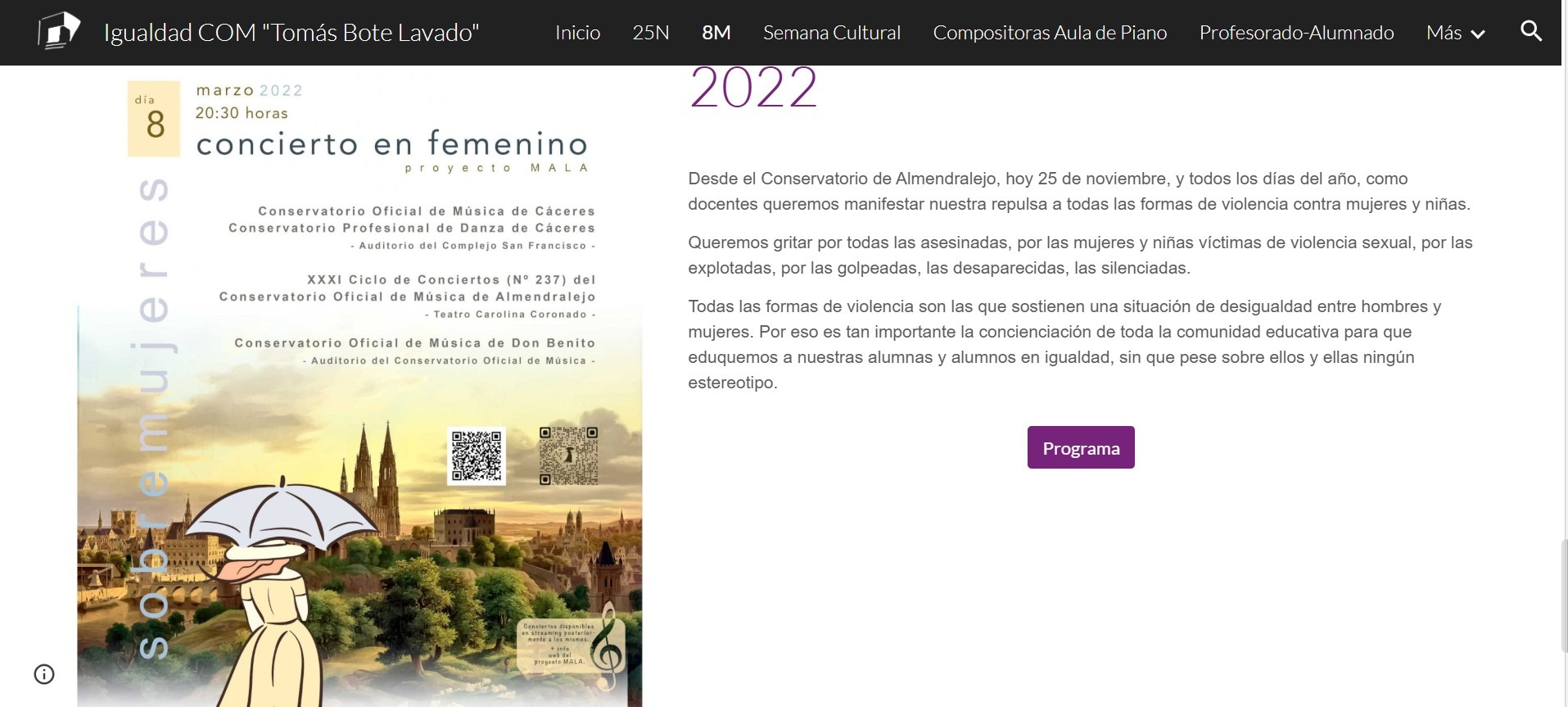 El proyecto tuvo como guía la obra «Y la mañana se llenó de luz» de la compositora Alicia Díaz de la Fuente, uniéndose el proyecto pedagógico musical con el Plan de Igualdad del centro.